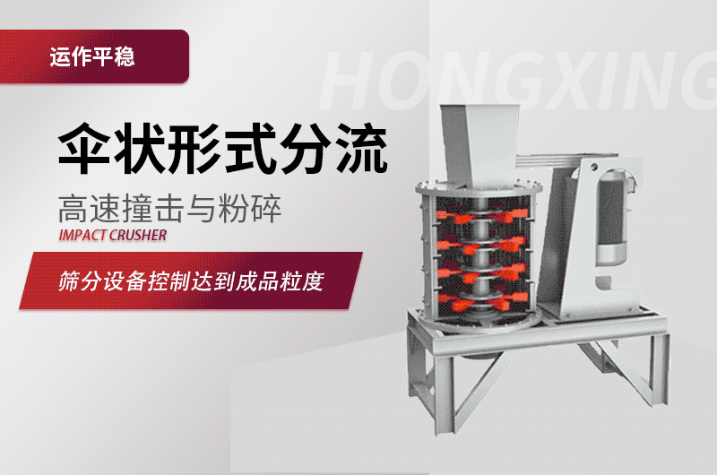 物料由复合式破碎机(复合破)上部垂直落入高速旋转的叶轮内,在高速离心力的作用下,与另一部分以伞状形式分流在叶轮四周的物料产生高速撞击与粉碎,物料在互相撞击后,又会在叶轮和机壳之间以物料形成涡流多次的互相撞击、摩擦而粉碎,从下部直通排出,形成闭路多次循环,由筛分设备控制达到所要求的成品粒度。